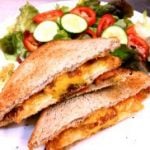 Pain de mie*, omelette végétale, fromage végétal, tomate*, moutarde*, servi avec de la salade*