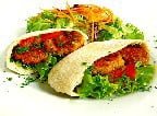 Pain pita*, falafels*, tomate*, concombre*, salade verte*, oignon*, houmous*, sauce maison*
