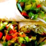 Tortilla de blé, protéine végétale, chou*, tomates*, salade verte*, oignon*, mayonnaise*, ketchup*